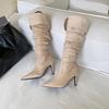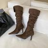 Maillard autumn and winter new French retro pointed head pleated thin heel high boots women's suede but knee long tube