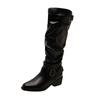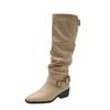 Weiche Lederversion~ spitzer dicker Absatz weiße kurze Stiefel Damen Gürtelschnalle Martin Boots Temperament Schaftstiefel