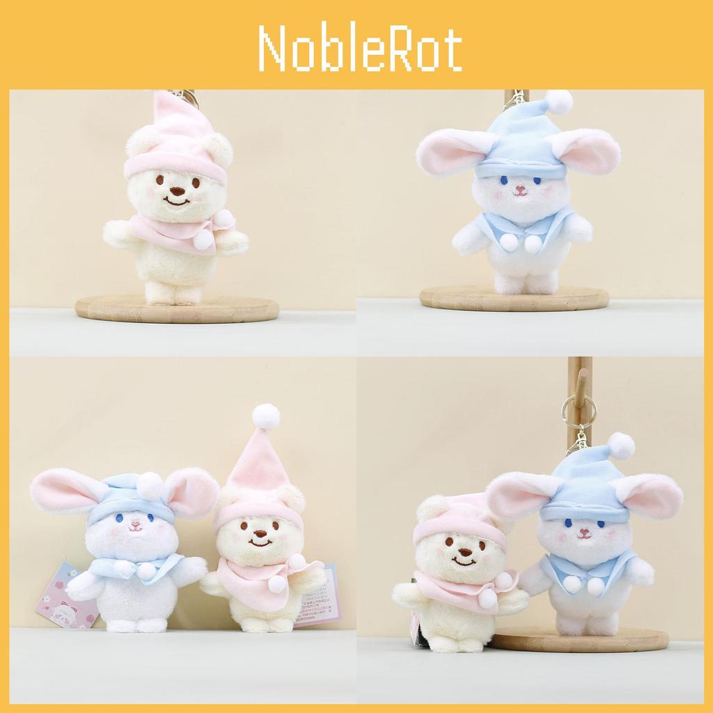 Adorable Design: The keychain features a charming soft bear and rabbit, both wearing festive Christmas hats, perfect for the holiday season.