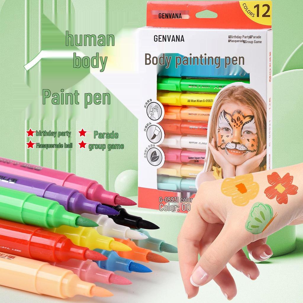 Washable 12-Color Body Paint Pen Set for Halloween, Concerts & Face Painting