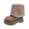 Fleece Schneestiefel Damen Herbst und Winter Fleece verdickt warm Muffin Dicksohle Baumwollstiefel Damen Kurzstiefel