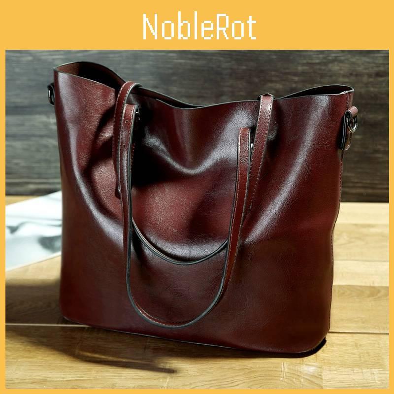 Fashion Retro Women Solid Colours Leather Tote Bag Large Capacity Waterproof