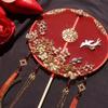 Roter Fächer im antiken Stil mit langem Griff für chinesische Hochzeiten - Handgemachtes Brautgeschenk