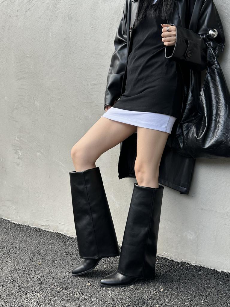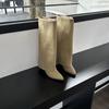Herbst und Winter 2025 neue spitze Stiefel mit dickem Absatz Retro aber Kniestiefel High Heel Western Cowboy Stiefel Ritterstiefel