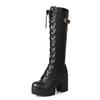 Frühling Herbst Schnürung Kniehohe Stiefel Damenmode Weiß Quadratischer Absatz Frau Lederschuhe Winter Pu Große Größe 43
