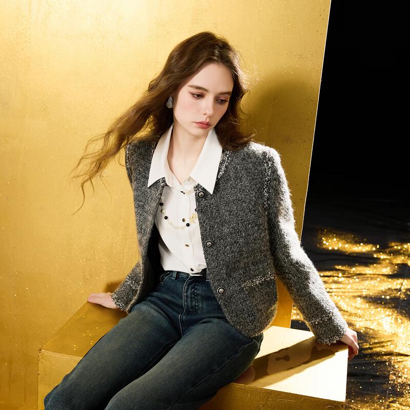 Sancai 2025 Winter Kurzer Gesteppter Tweedmantel