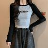 Real shot long-sleeved T-shirt women's autumn and winter short, small inner bottoming shirt German velvet plush shoulder sleeve top