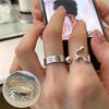 Koreanischer 3D Herzring: Damen Retro Breiter Ring, Modischer Englischer Buchstaben Offener Fingerring, Hip-Hop Stil Zeigefingerring.