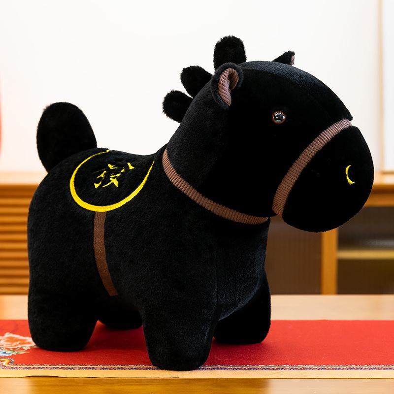 Neues Schwarzes Pferd Plüschtier Pony Puppe Stoffpuppe Tierkreiszeichen Jahr des Pferdes Maskottchen Heimschmuck