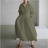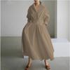 Elegantes Damen Frühlings-Sommerkleid Reverskragen Langarm Schwarzes Kleid Uni Langes Hemdkleid OL Vestidos Robe Streetwear