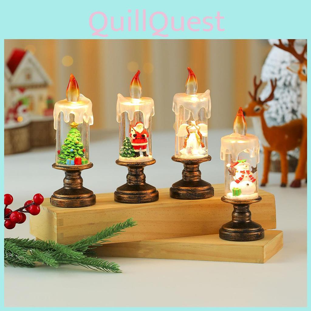 Snowman Santa Christmas Claus Snowflake Candle Light With Falling Snow Effect
