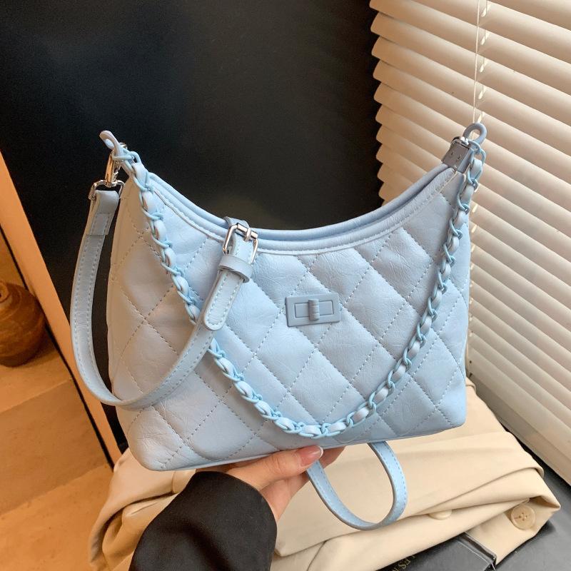 Spring and summer new products fashionable small fragrant wind rhombus chain underarm bag women's versatile commuting foreign style casual solid color