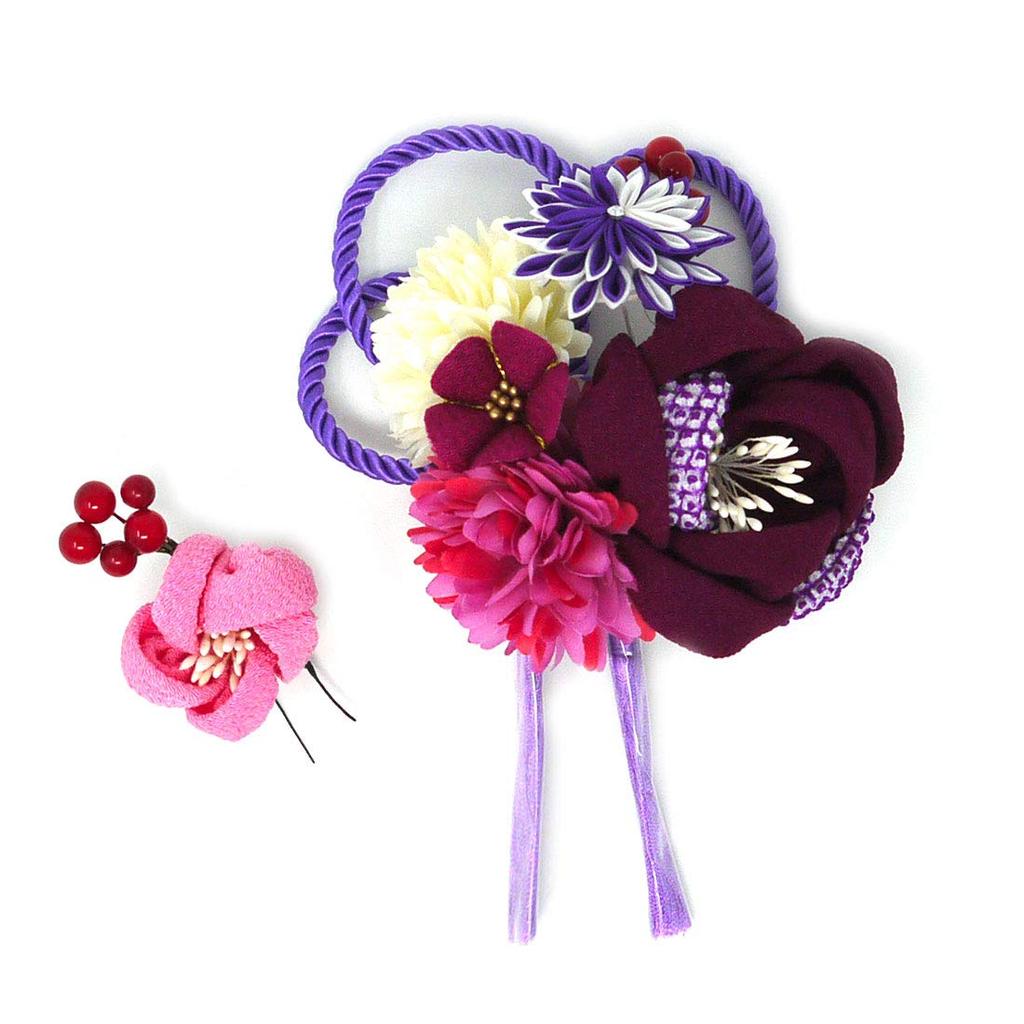 Kimono-Haarschmuck für Chirimen Rot und Lila [Stilvoll Iroha] Volljährigkeitszeremonien, Handwerk, 2-teiliges Set,