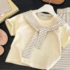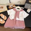 Dieses lebhafte Set ist eine stilvolle Ergänzung für jede Mädchen-Sommergarderobe.. Es verfügt über einen kurzärmeligen, gestreiften Schal, der mühelos zu weiten Hosen passt und eine Mischung aus Komfort und schickem Stil bietet.. Dieses Ensemble aus weichem Cord bietet eine einzigartige Textur und Strapazierfähigkeit, die perfekt für zwanglose Ausflüge oder besondere Anlässe ist.. Die von Dopamin inspirierte Farbpalette verleiht einen Hauch von Freude und Energie und macht sie zu einer idealen Wahl für die kommende sonnige Saison.