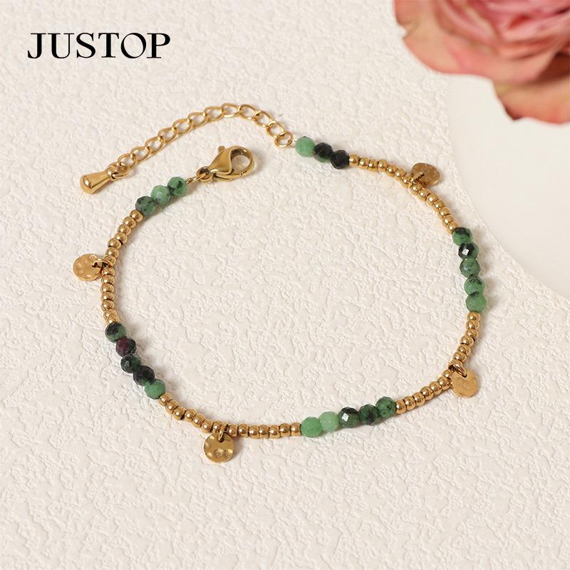 JUSTOP 18K vergoldetes Natursteinarmband mit französischen Farbkugeln