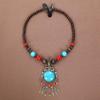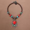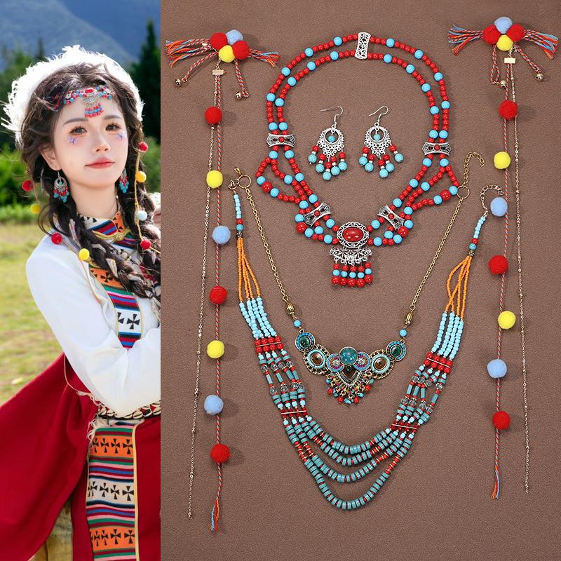 Böhmisches Retro Halsketten- & Ohrring-Set: Ethnischer Stirnschmuck im tibetischen Stil