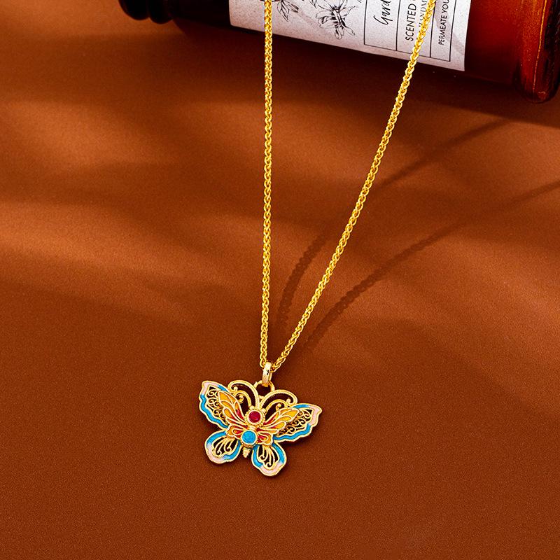 Vintage Vietnamesische Gold-Schmetterlings-Halskette - Ethnisches Filigran-Design mit Tropföldekor
