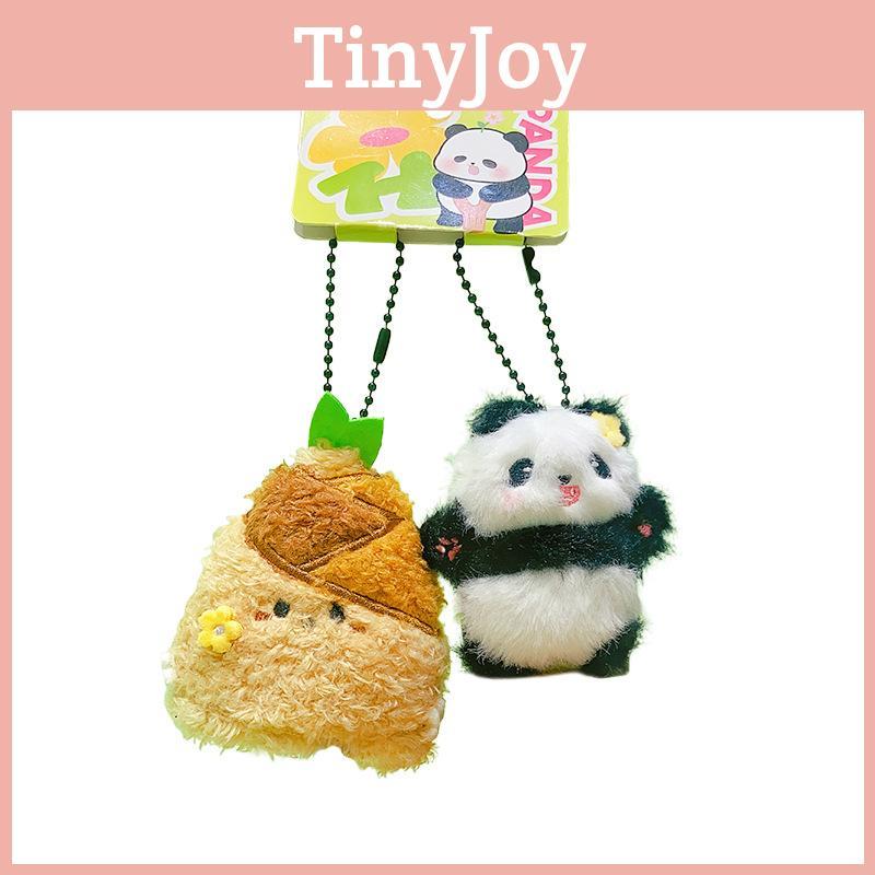 The plush keychain features a cute panda design holding a bamboo shoot, crafted from soft plush material for a tactile feel. Measuring approximately 3 inches in height, it combines green and brown tones for a charming look. Ideal for decorating keys, bags, or backpacks, it adds a playful touch to everyday items. Wipe clean with a damp cloth to maintain its appearance.