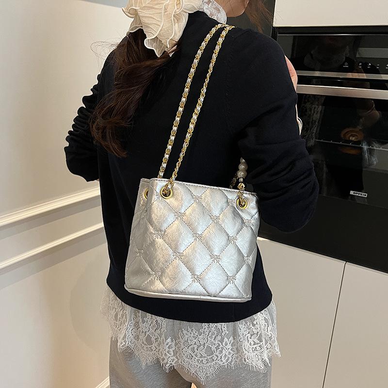 Korean version of fashion diamond chain bag women's bag 2025 new simple bucket bag niche shoulder messenger bag