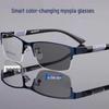 Herren High-End Halbrand Photochromatische Myopiebrille mit Blaulichtfilter und Korrektionsoptionen