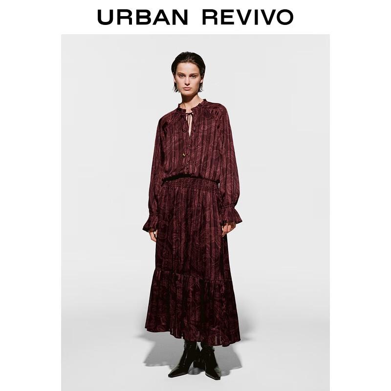 UR Women's Retro Floral Tie-Waist Long Sleeve Dress