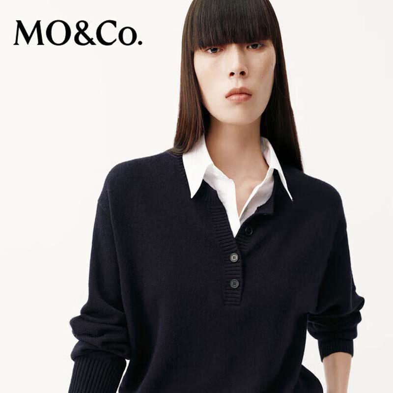 MO&Co. Women's Faux Two-Piece Wool-Cashmere Knit Sweater