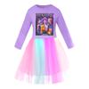 Mädchen Sternenmuster Rock Rundhals Langarm Buntes Spitzen-Patchwork Kleid