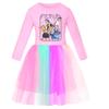 Mädchen Sternenmuster Rock Rundhals Langarm Buntes Spitzen-Patchwork Kleid