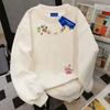 Reine Baumwolle American High Street Cartoon Buntstift Buchstaben Aufdruck Rundhals Sweatshirt Damen Herbst Winter Samt Oberteil