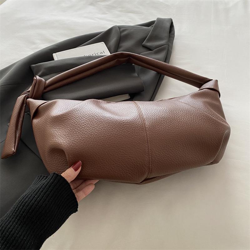 Korean ins retro soft leather pleated dumpling bag, casual and versatile one-shoulder crossbody bag, lazy style croissant bag