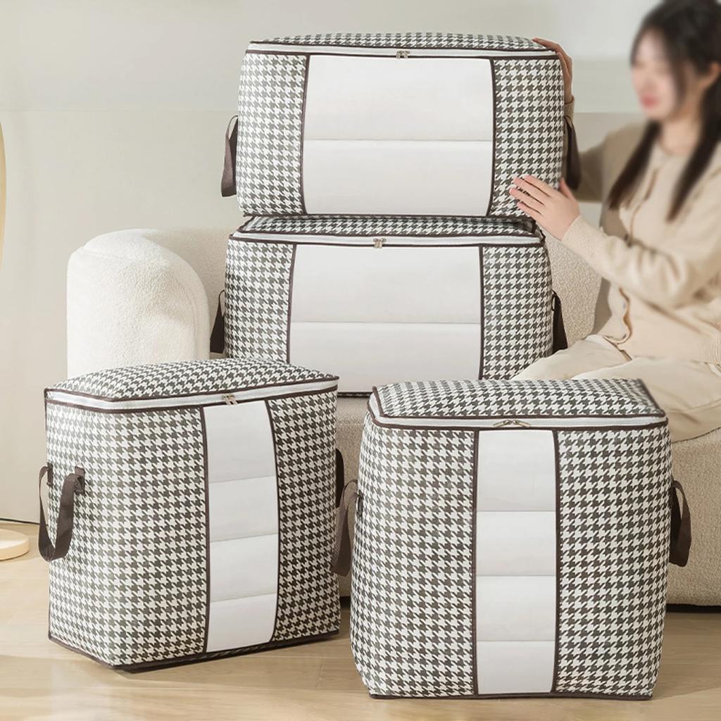 3 Stück - Aufbewahrungsbox mit großem Fassungsvermögen und Hahnentrittmuster, staubdichter Behälter mit Reißverschluss, Koffer Kleidung Steppdecken Organizer