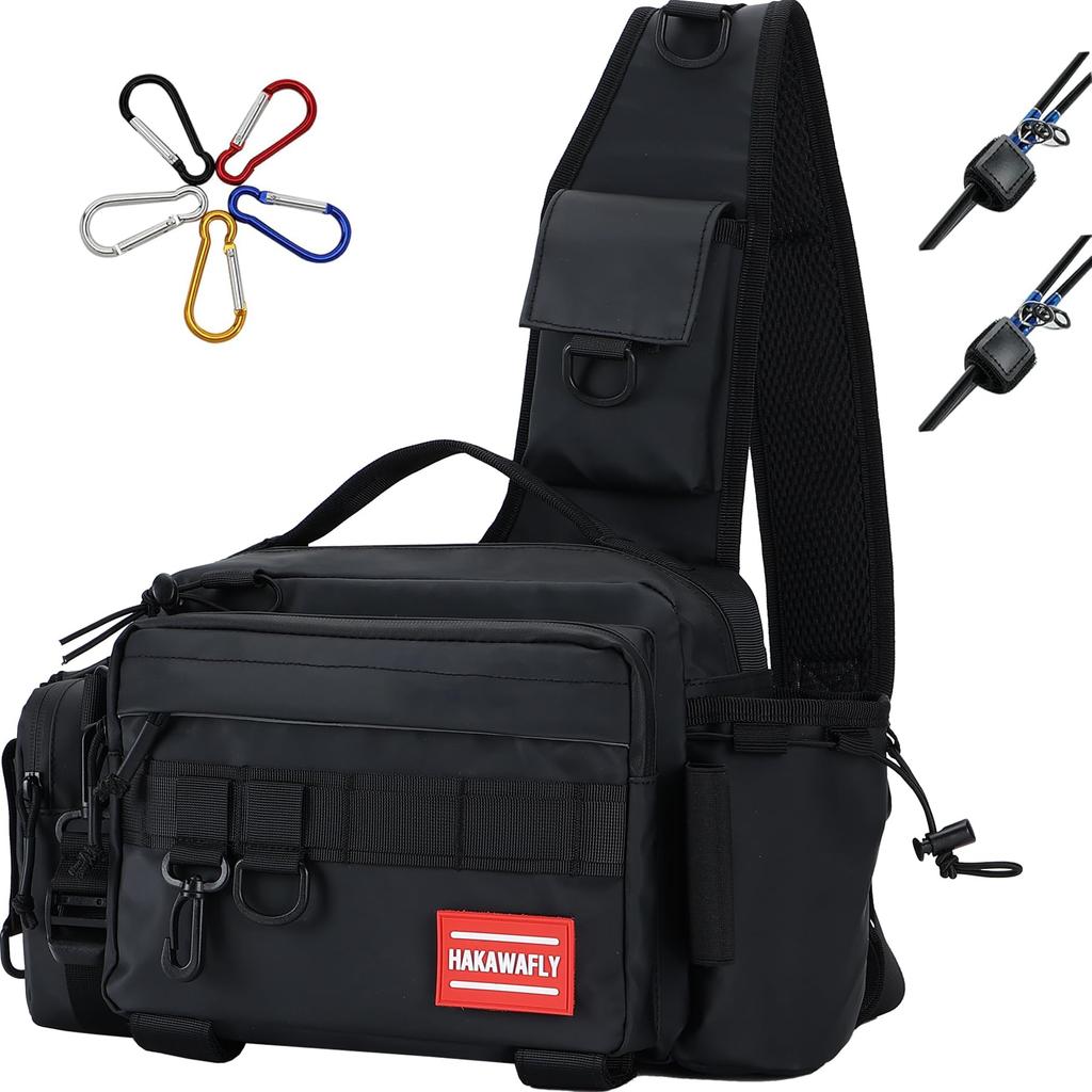 [5-Way Design and Up to 3 Rod Attachments] This 5-way bag can be used as a fishing bag, shoulder bag, waist bag, handbag, or messenger bag. It features a simple rod holder that can be attached at three points. It's lightweight, spacious, and highly functional. This fishing bag is suitable for any occasion and style, regardless of gender.