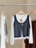Damen Herbst Lagenlook Koreanisches Gestreiftes Strick-Cami & T-Shirt Set