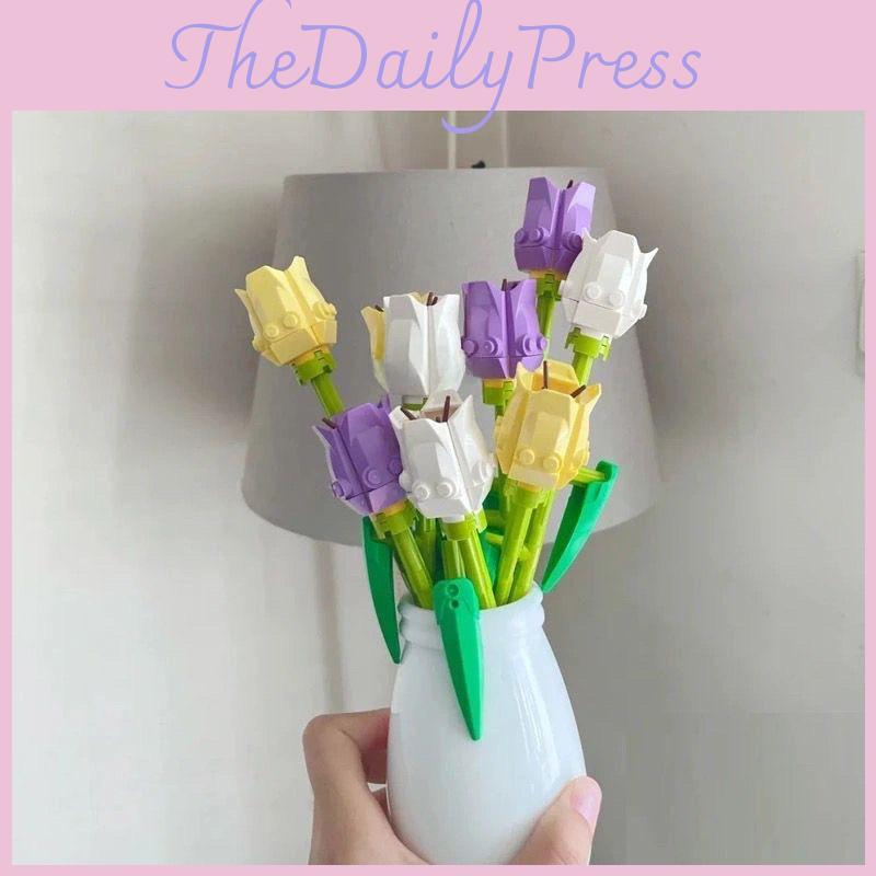 Crafted from high-quality ABS plastic, these building blocks promise durability and safety, making them perfect for both children and adults alike.Each flower is designed to be easily assembled, allowing you to engage your skills and creativity as you construct beautiful bouquets.The set includes three tulips, one sunflower, and white rose, providing a colorful palette for your floral arrangements.