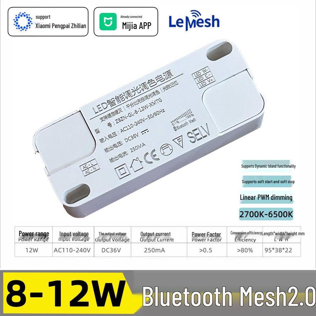 12W Dual-Color Bluetooth Mesh 2.0 Smart Dimming Driver Compatible with Mijia App for Downlight and Spotlight