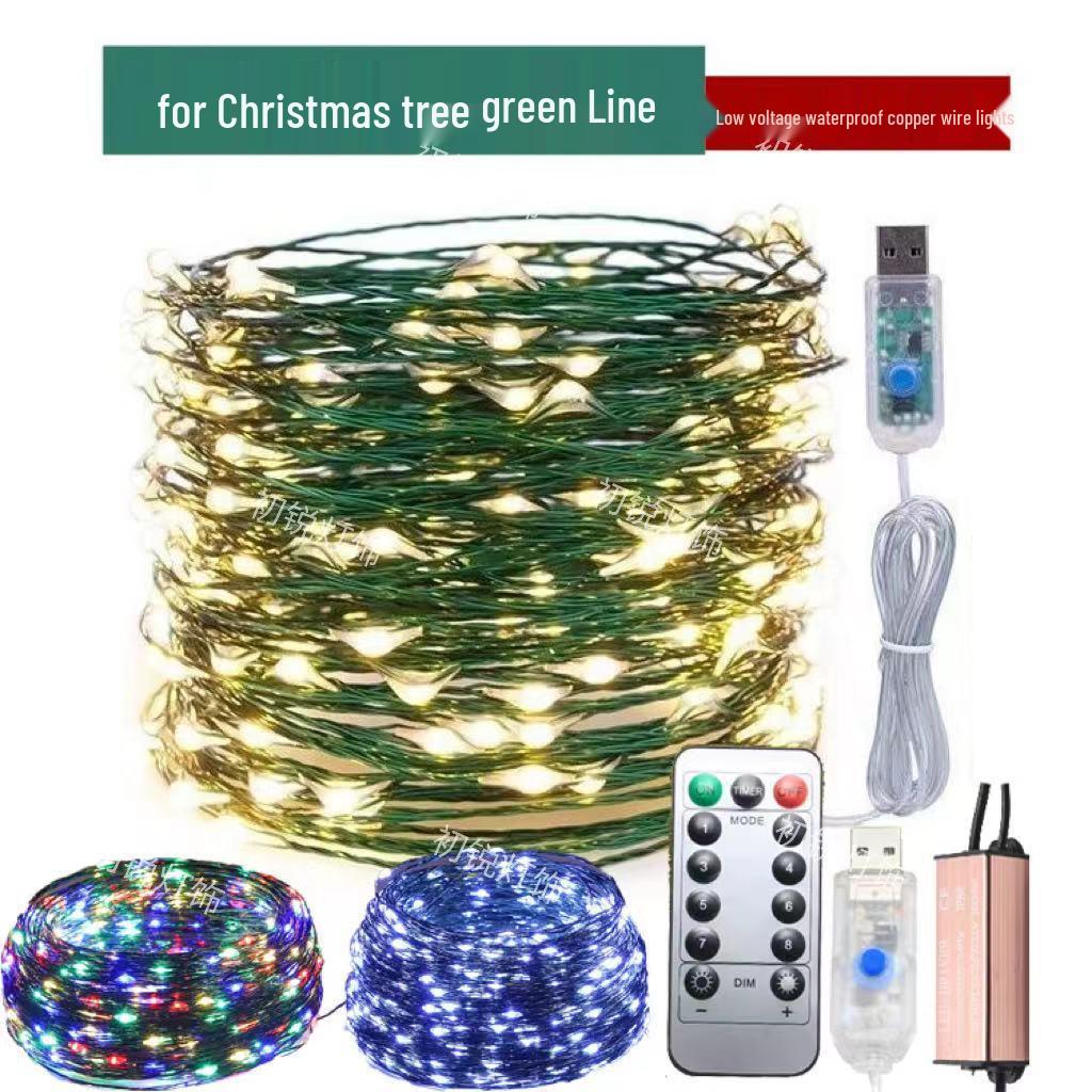 Funkelnder Stern Kupferdraht Weihnachtsbaum Lichterkette mit grünem Draht zur Girlanden- und Kranzdekoration