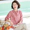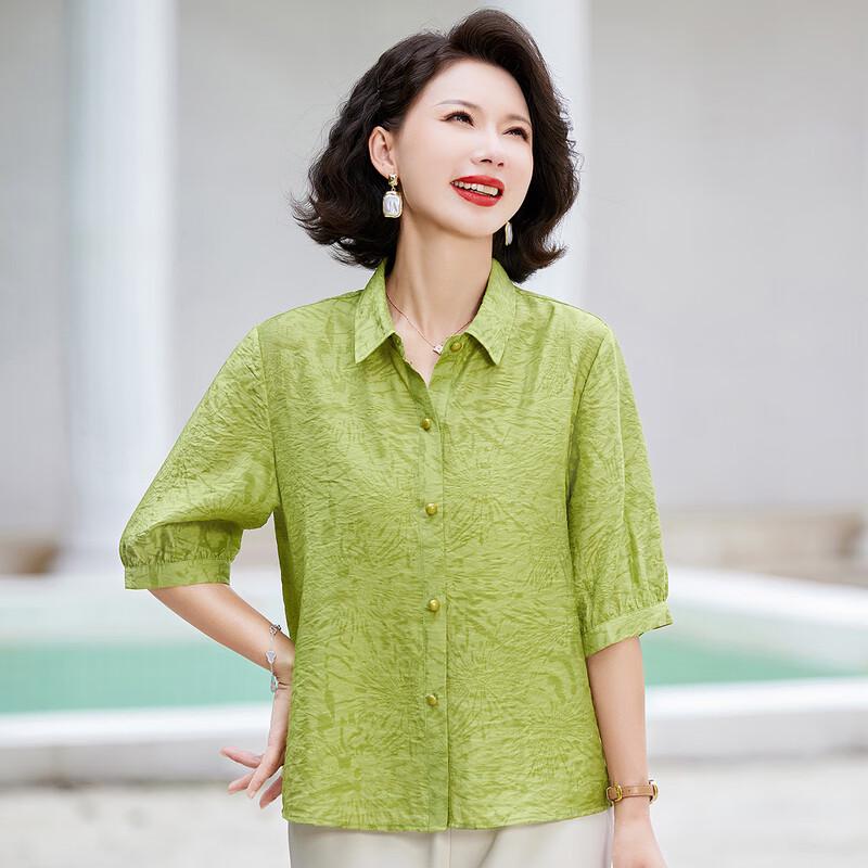 Pasite Damen Sommer Locker Geschnittene Bluse mit Kragen und Halbarm