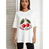 Damenmode Weiches T-Shirt Kirsche Frisch Saftig Tee Baumwolle Kurz Weiß Oversize
