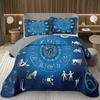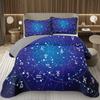 Starry Sky Galaxy Quilt Set 2/3 Pieces, Geometric Lines Bedspread Set,12 Constellations Astrology Zodiac Coverlet Set Twin King