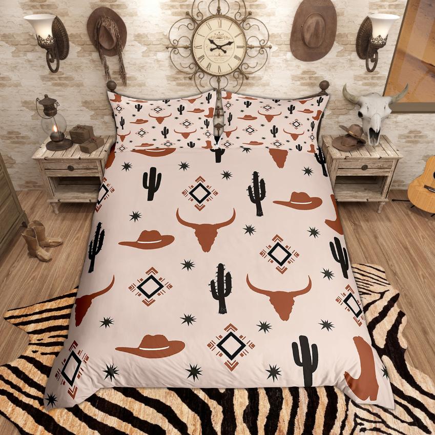 Homewish Western Cowboy Cowgirl Bettbezug-Set, Rustikales Bauernhaus Bettwäsche-Set, Vintage Stiefel Hüte Bettdeckenbezug-Set