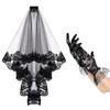Geheimnisvolle Dame Halloween Schwarzer Spitzen Schleier und Handschuhe Set Atmungsaktive und Bequeme Kopfbedeckungen Party Kopfschmuck