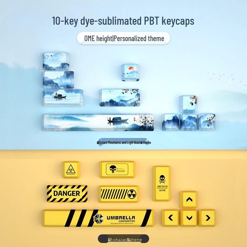 Whale Dream Mountain Light Mechanische Tastatur-Tastenkappen - 10 PBT-Farbsublimations-Tastenkappen, rutschfest und verschleißfest