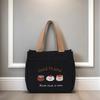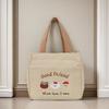 1Piece Cute Embroidered Small Bear Printed Canvas Versatile Handbag Office Worker Lunch Bento Tote Bag Mountaineering Bag