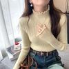 Super gutaussehendes Pilzkanten-Unterteil für Damen, Herbst und Winter, mit weißem Strickpullover, Rollkragenpullover