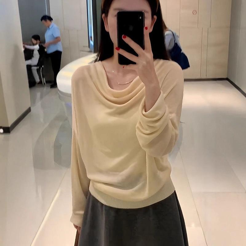 Großgröße schwingender Kragen One-Shoulder Langarm Strickpullover Damen Herbst Neu Fett MM faul und dünn Temperament Oberteil