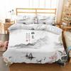Japanisches Samurai Bettbezug Set Jungen Mädchen Kirschblüten Bettdeckenbezüge Roter Sonnenuntergang Bettwäscheset Japanischer Stil Steppdeckenbezug