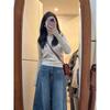 Crew neck black long-sleeved sweater women's autumn and winter high-end design sense pure desire knitted bottoming shirt top