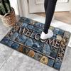 Willkommen Kopfsteinpflaster 3D Steinmuster Fußmatte Rutschfester Teppich Wasserdicht Maschinenwaschbar Polyesterteppich Für Zuhause Außendekor