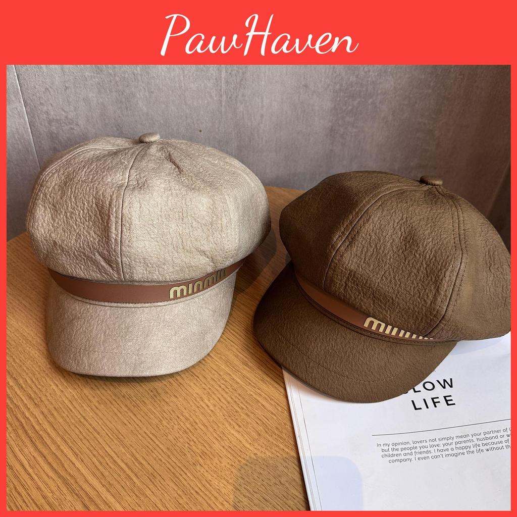 Pu Letter Material Curved Brim Octagonal Cap Cold Season Accessories Fashion