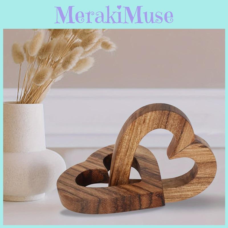 Doppeltes Holz-Ineinander verschlungenes Herzen Ornament Gedenkgeschenk Andenken Dekoration Für